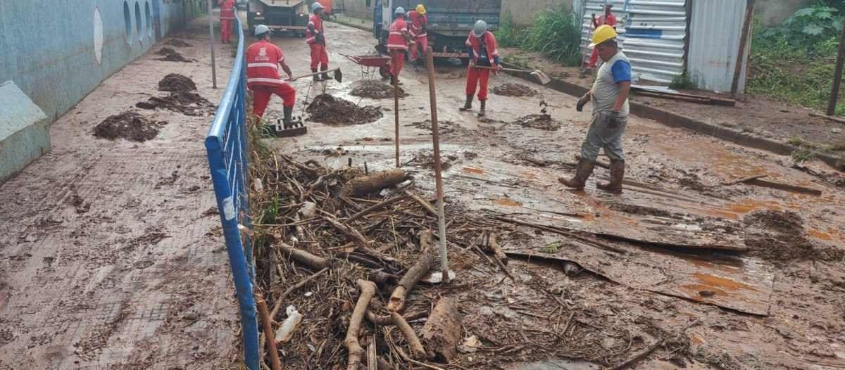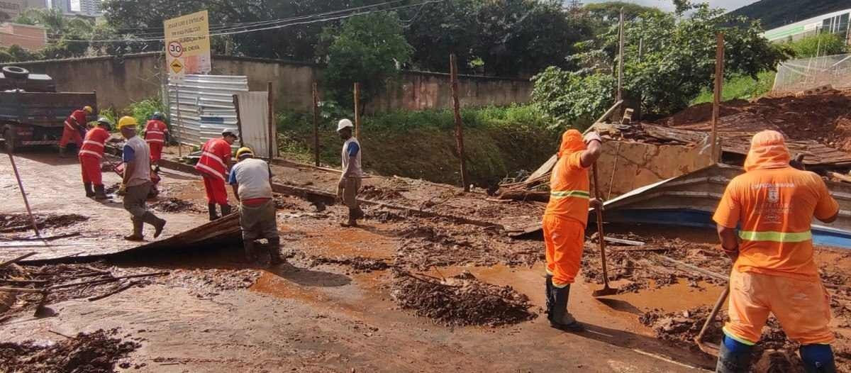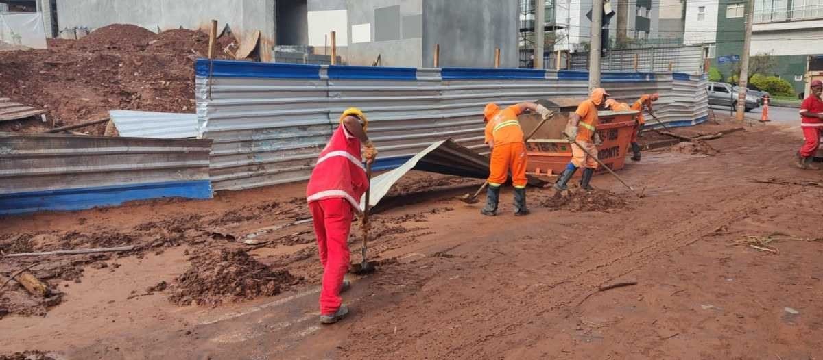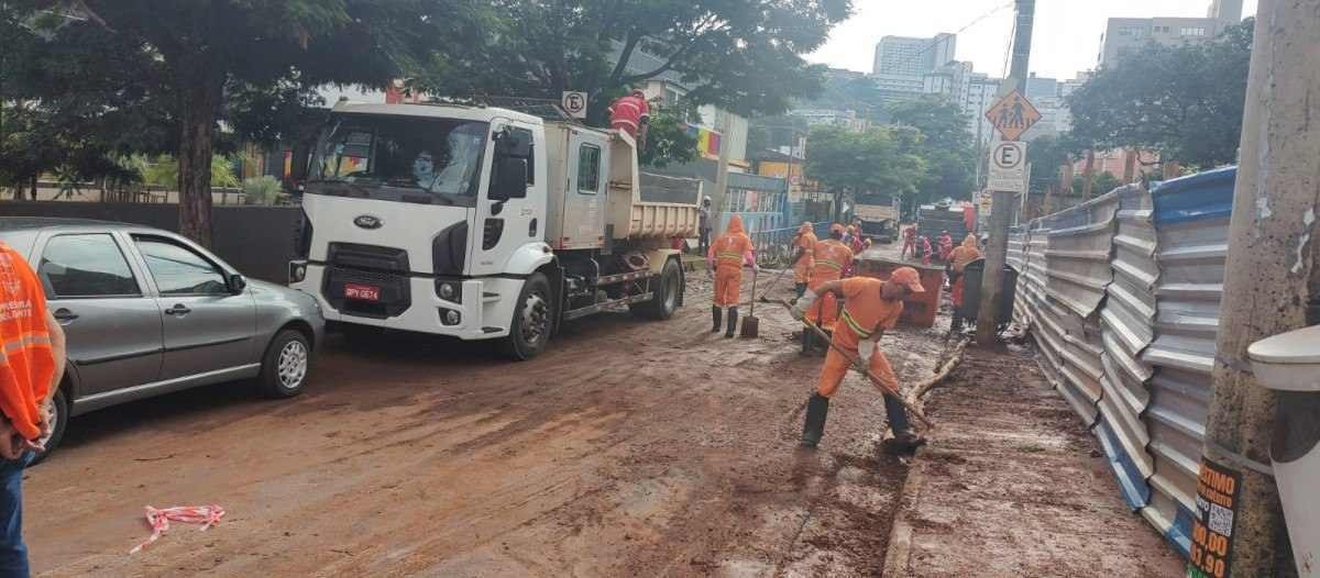Chuva em BH: rua do Buritis amanhece fechada por causa da lama