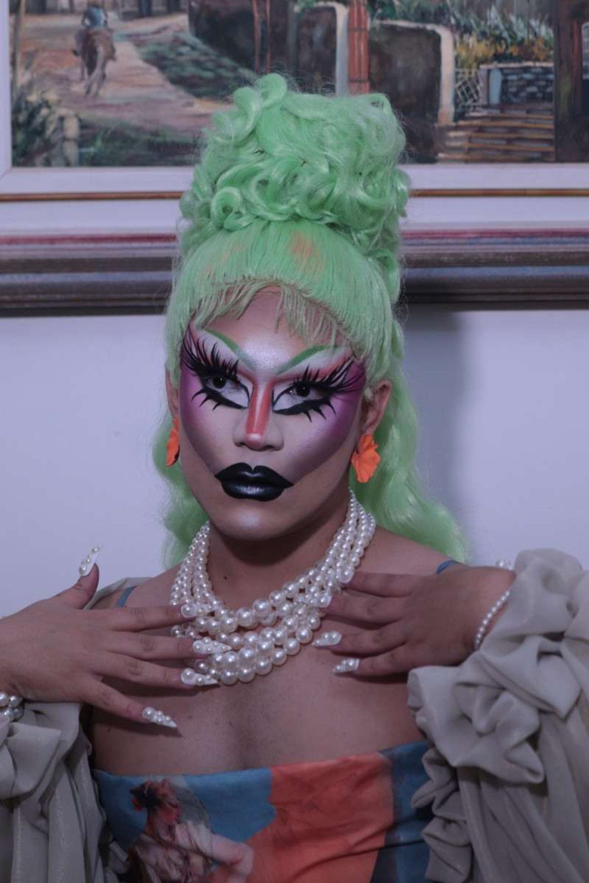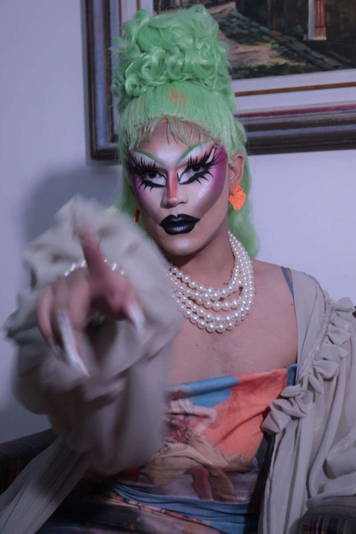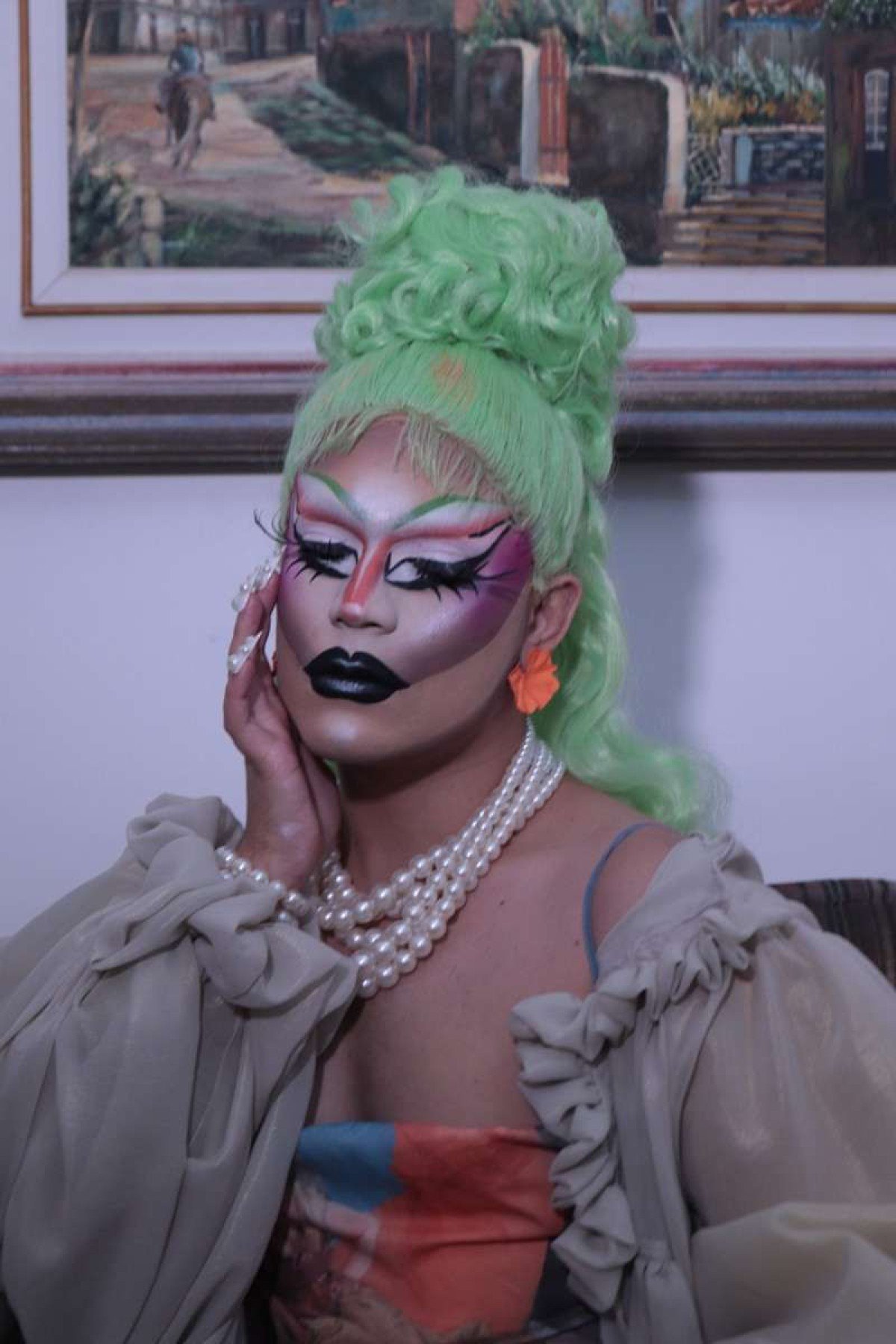 Mesmo nesse lugar de conforto, Aquarela passou a se cobrar demais para se encaixar na cena drag. Foi então que veio a pandemia. Confinada, Aquarela começou a fazer experimentações ali, dentro de seu quarto. “Comecei a explorar minha criatividade e cheguei nisso aqui”, disse, apontando para si mesma, orgulhosa de si.