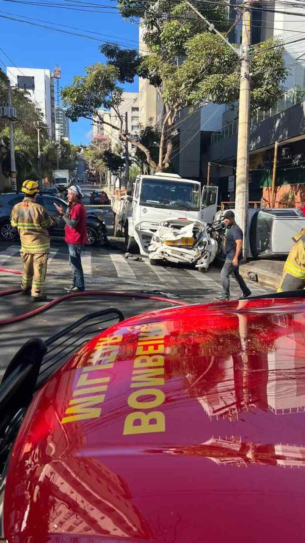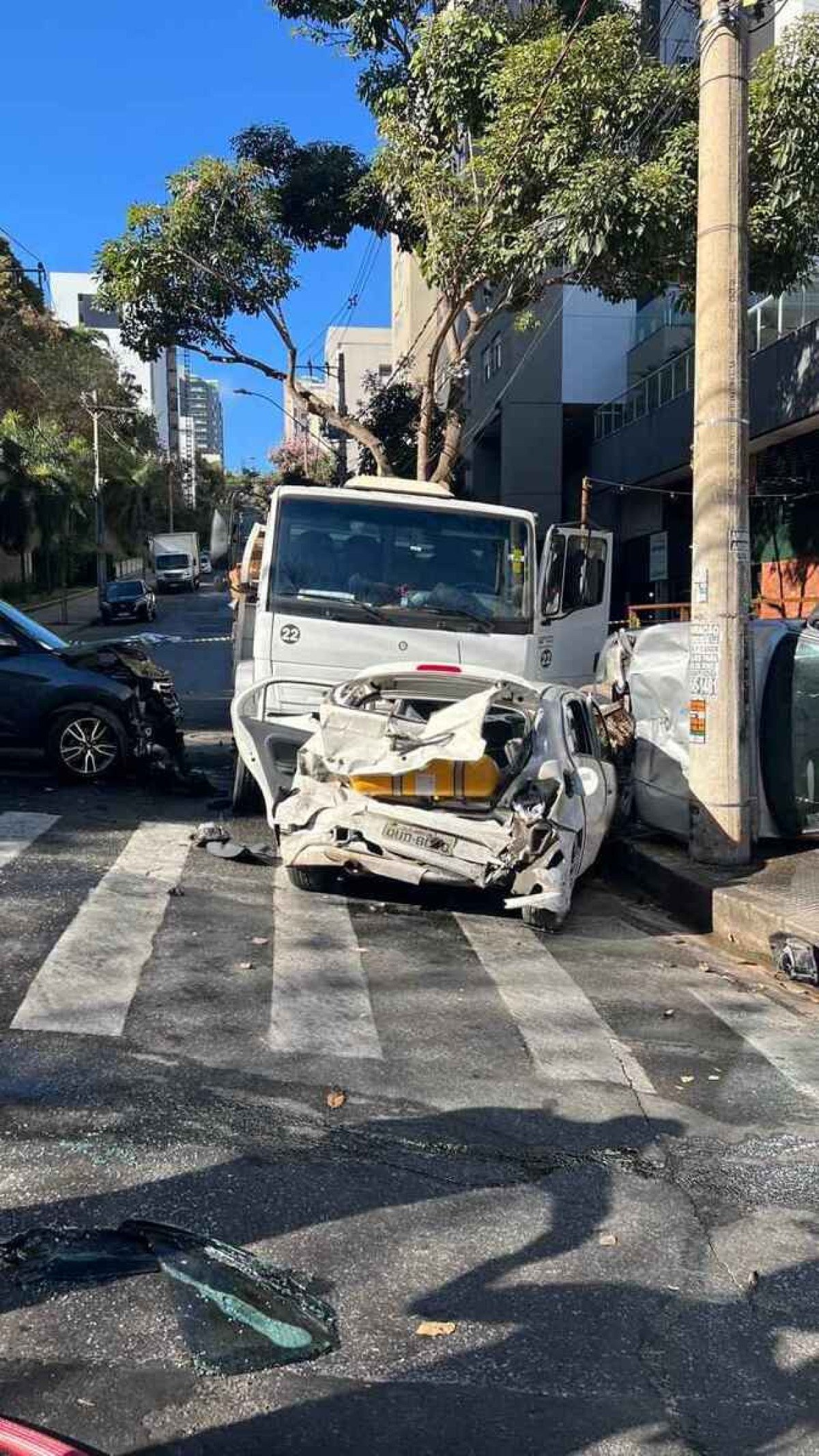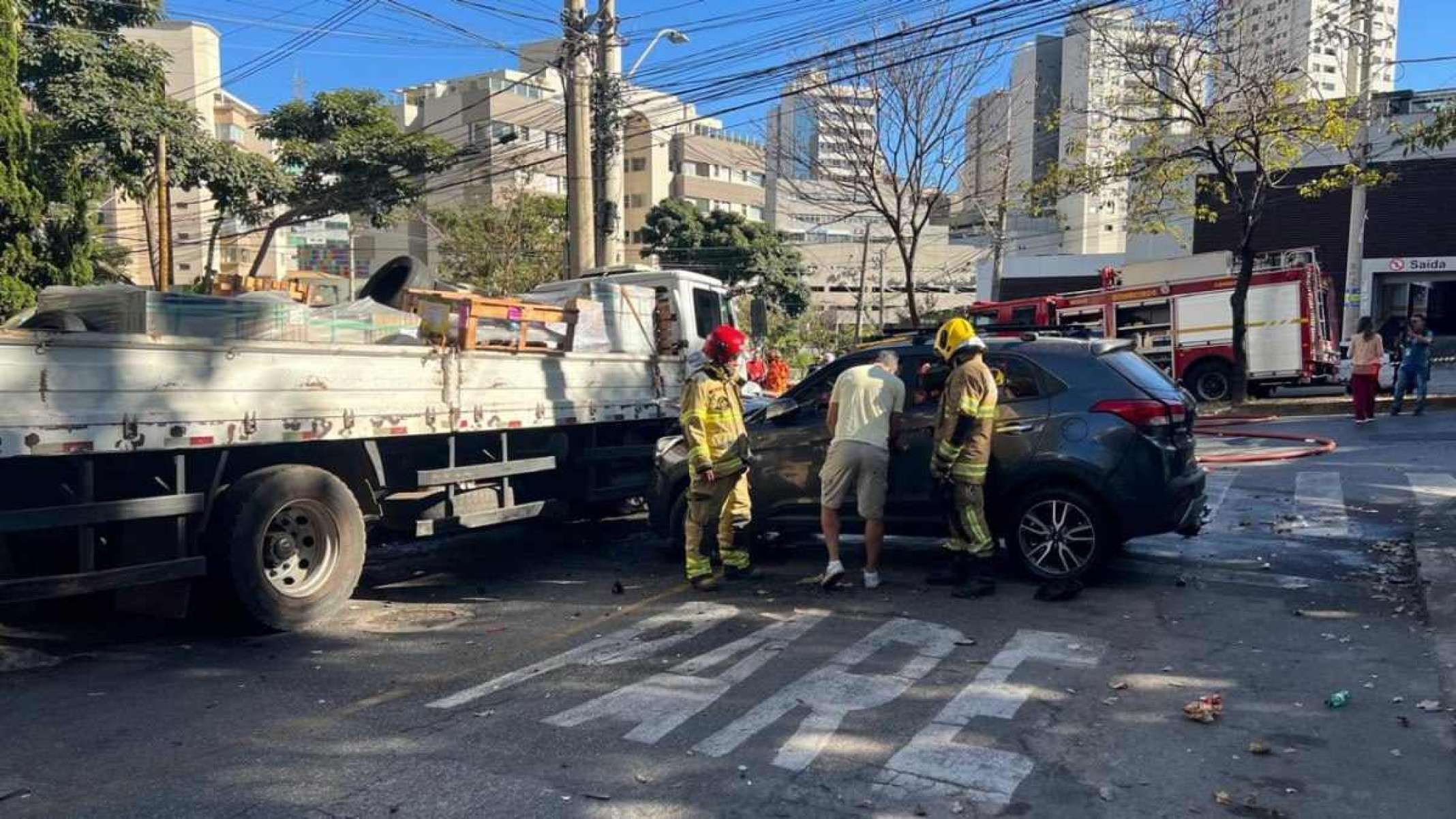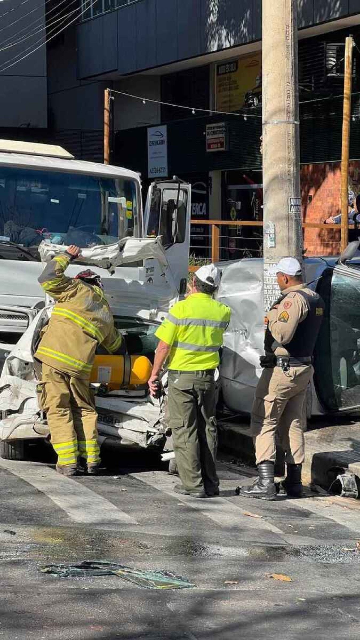 Segundo o Corpo de Bombeiros, um caminhão perdeu os freios e bateu em três carros estacionados na rua Geraldo Lúcio Vasconcelos. Com o impacto, os carros foram arrastados até o cruzamento da rua com a Avenida Professor Mário Werneck.