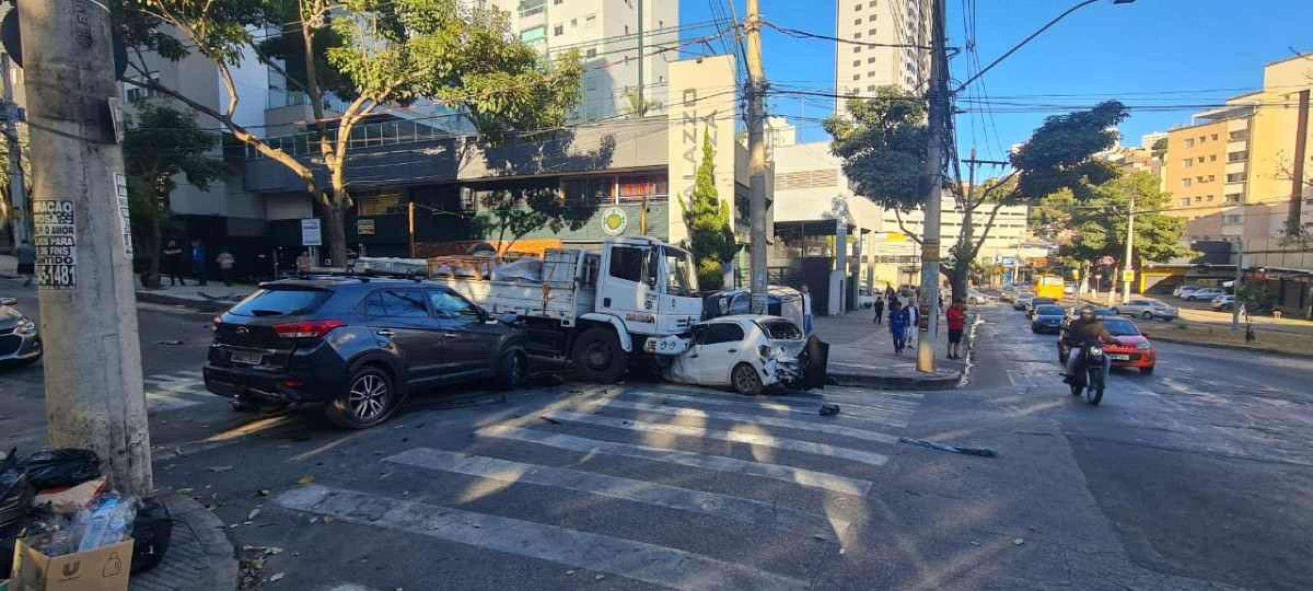 BH: caminhão arrasta três carros e deixa feridos no Buritis
