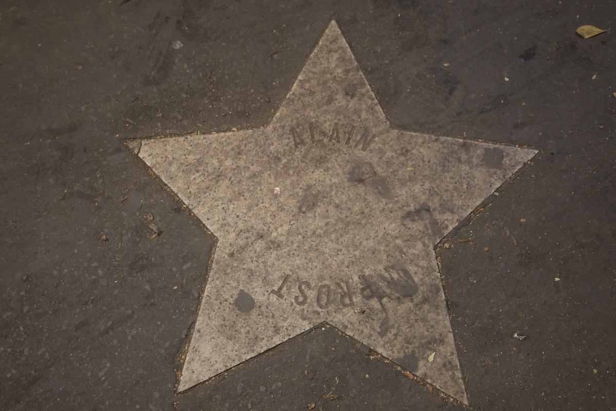 Estrelas cinzentas e desgastadas estampam a calçada na porta do Shopping Tupinambás numa homenagem no estilo hollywoodiano