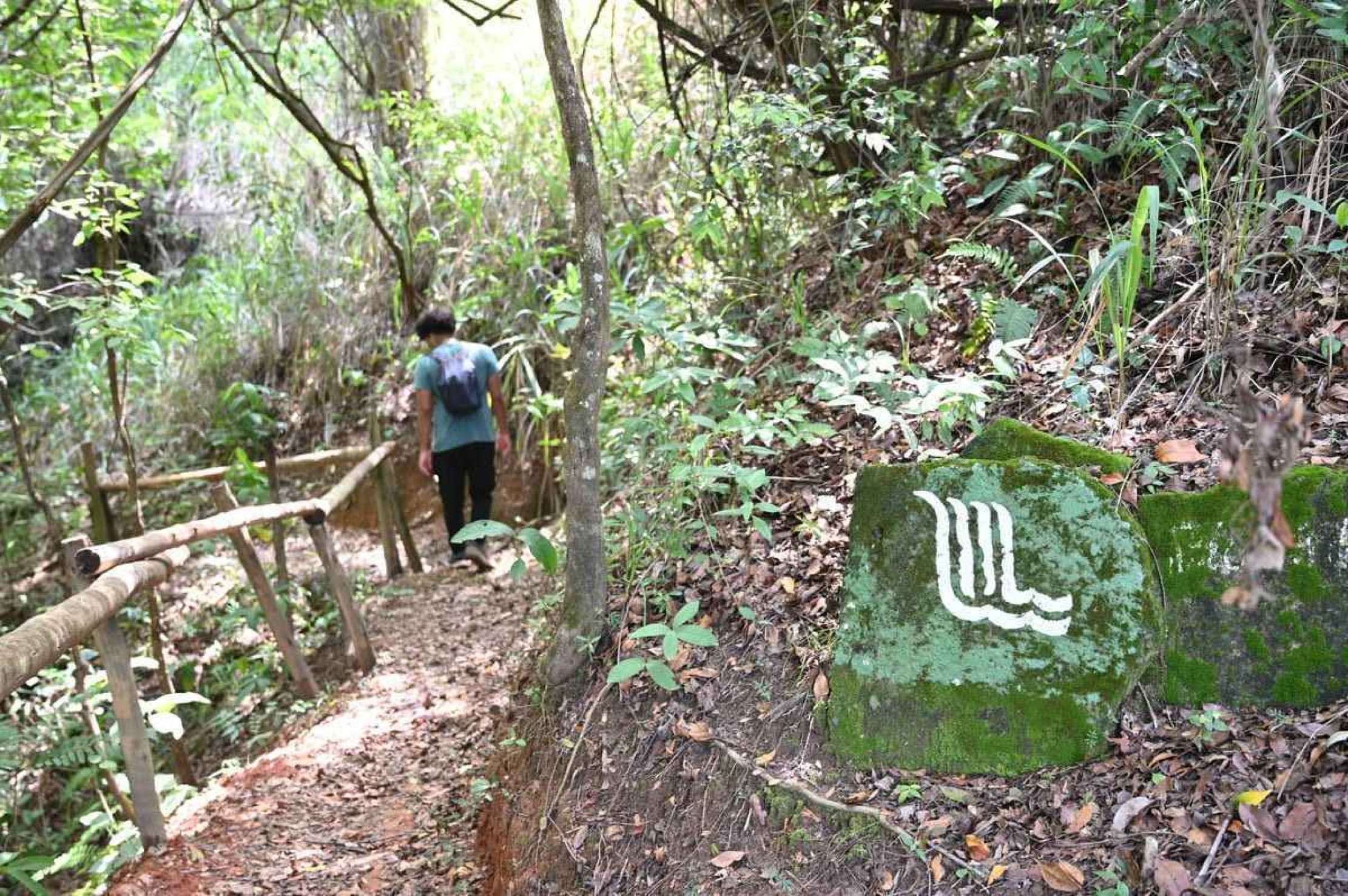 Logo após subir uma pequena escadaria, uma placa indica o início da Trilha da Mata. O trajeto é bem delimitado no chão, mas é preciso tomar bastante atenção pois há trechos com muitas pedras, além de travessias em pontes. Novamente, não é nada muito desafiador em comparação às trilhas do Rola Moça, e há corrimões e parapeitos nos locais mais perigosos.