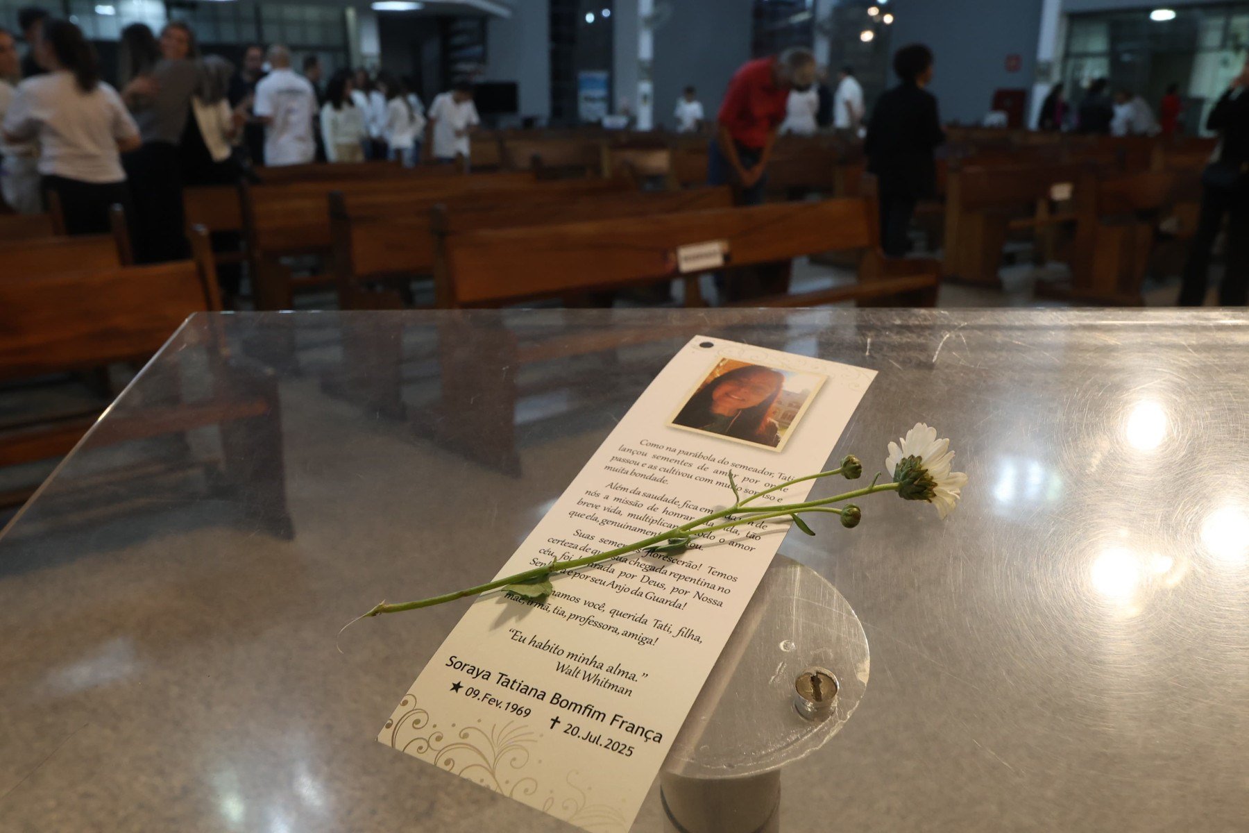 Em clima de emoção, a Irmã Roseli Hart, coordenadora pedagógica do Colégio Santa Marcelina, onde Soraya Tatiana trabalhava, fez um pronunciamento ao final da homenagem religiosa. Ela destacou o legado que a professora deixou para os estudantes e todos que a conheceram. Os presentes responderam à fala com efusivos aplausos.