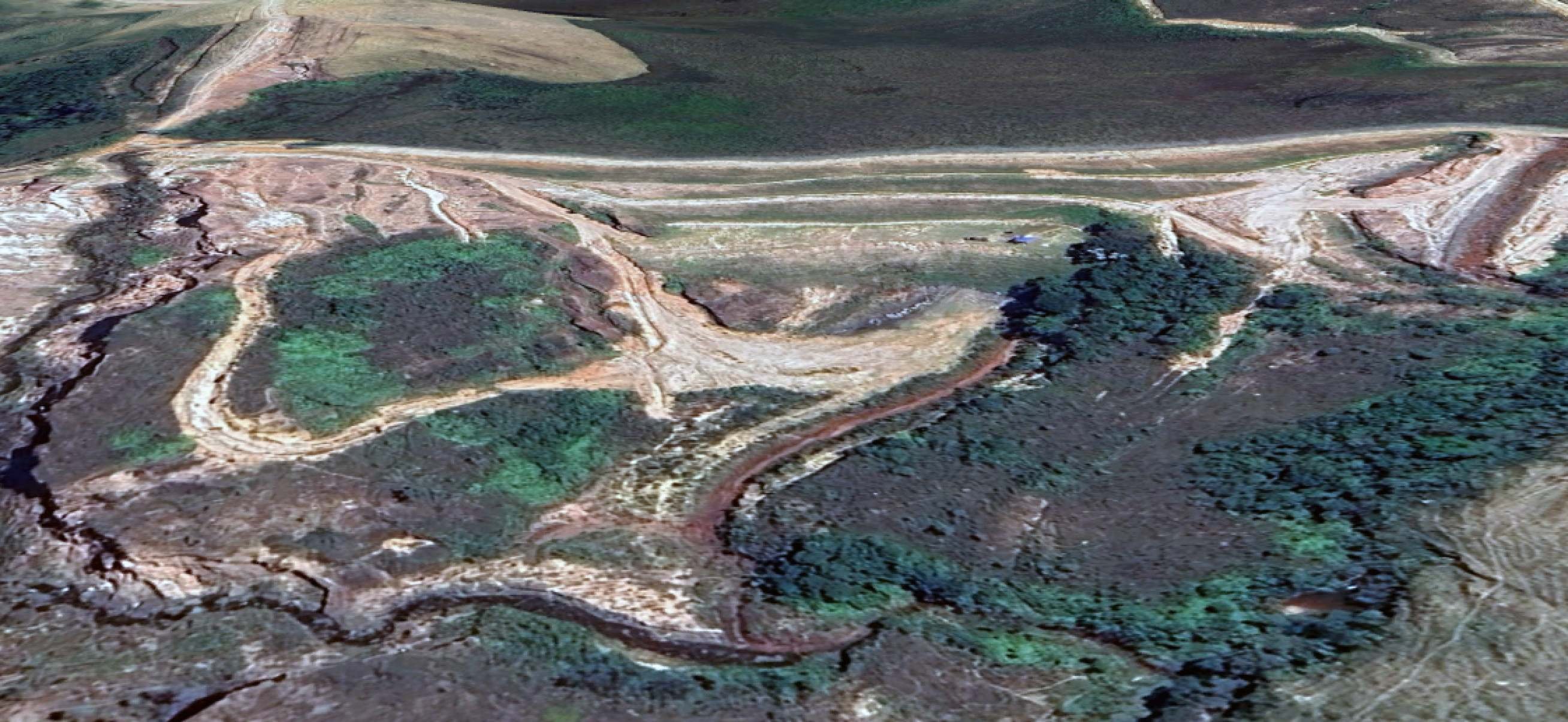 Imagem de satélite mostra a Barragem Água Fria, da Topázio Mineração, estruttura em risco que teria de ser contornada - (crédito: Reprodução/Google Earth)