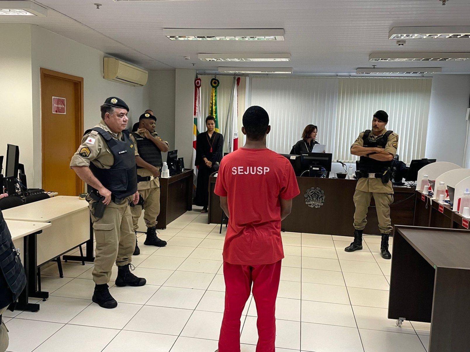 Flávio Junio Lopes foi condenado por tentativa de feminicídio. O júri, composto por sete pessoas, sendo três homens e quatro mulheres, aceitou as qualificações de motivo fútil, recurso que dificultou a defesa da vítima, meio cruel e a presença da filha durante o crime. A pena é de 16 anos de prisão em regime fechado.