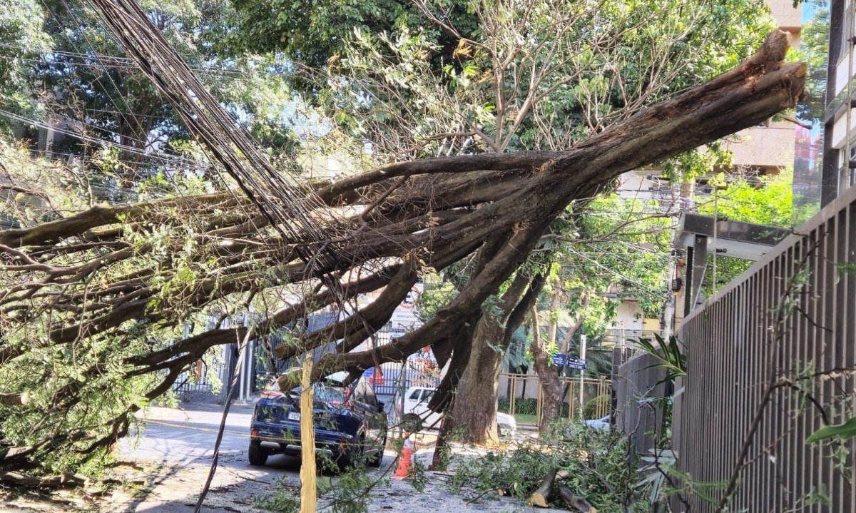 Queda atingiu rede elétrica e veículo e bairro segue sem luz nesta segunda-feira; BH teve ventos de até 100km/h de ontem para hoje
