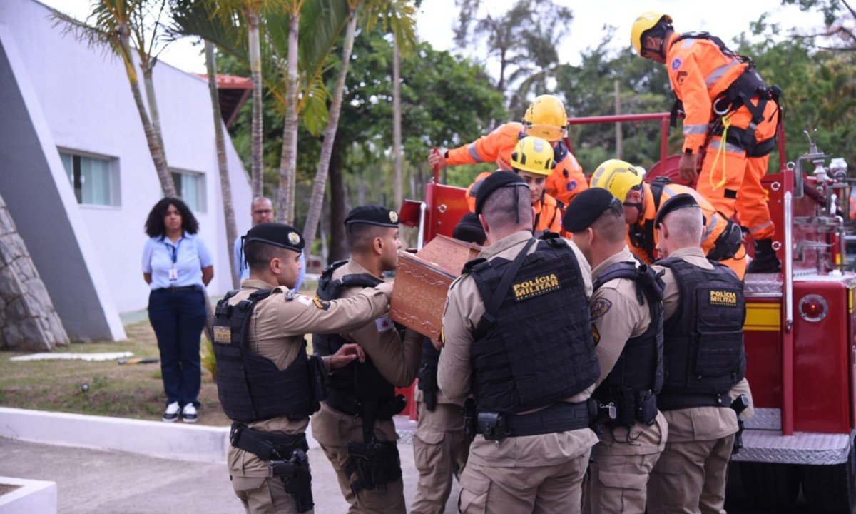 Militares do 39º Batalhão da Polícia Militar de Minas Gerais (PMMG), do qual era lotado o cabo Vinícius de Castro Lima, morto durante um assalto em uma concessionária no Barreiro, em BH, carregaram o caixão como homenagem ao colega. O crime aconteceu nessa terça-feira (21/10), e o corpo será velado e sepultado nesta quarta (22/10), no Cemitério Parque da Colina, na Região Oeste da capital.