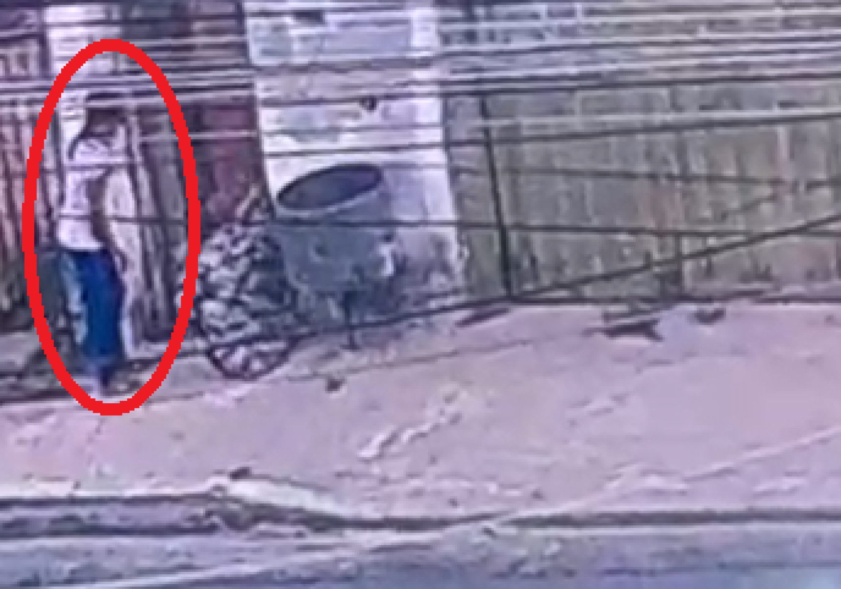As imagens mostram que Eugênia está do outro lado da via, mas se aproxima de um homem sentado no meio fio, em frente a um portão. De acordo com a neta da vítima, o suspeito é conhecido da família e prestava serviços como capina de lotes.
