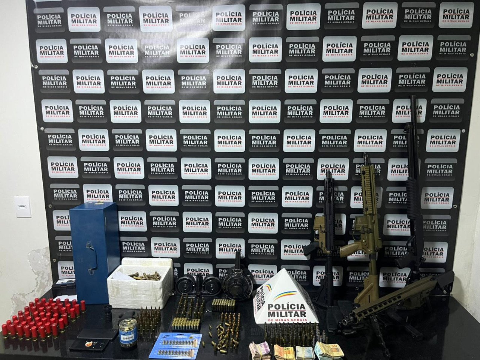 Segundo informações da Polícia Militar (PMMG), a ação faz parte da Operação Circuito Fechado, que cumpriu mandados de busca e apreensão. Durante as diligências, os militares encontraram armas de alto calibre, diversas munições e grande quantidade de dinheiro em espécie.