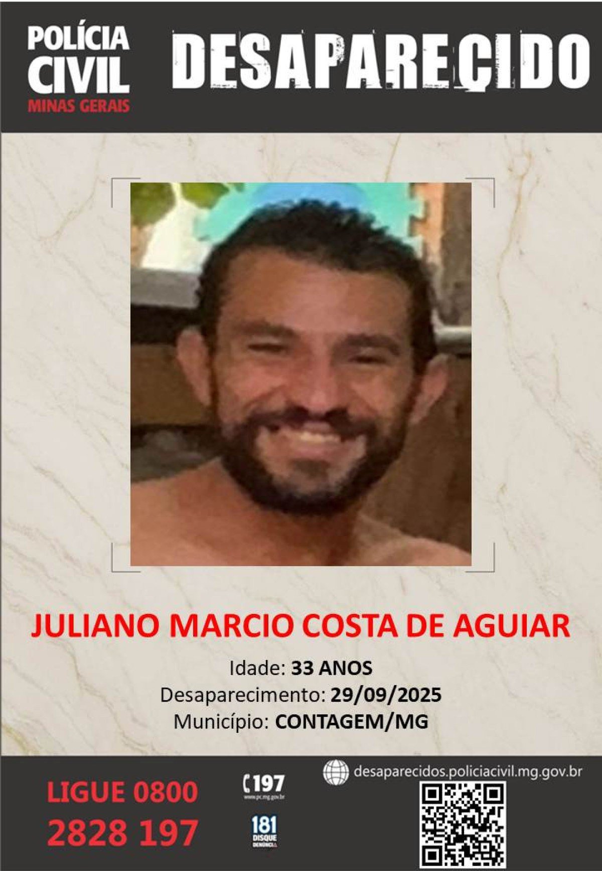 Há quase um mês, Juliano Marcio da Costa Aguiar, de 33 anos, está desaparecido. Ele foi visto pela última vez em 29 de setembro, por volta das 13h, próximo à Avenida Vila Rica, no Bairro Riacho das Pedras, em Contagem, na Região Metropolitana de Belo Horizonte.