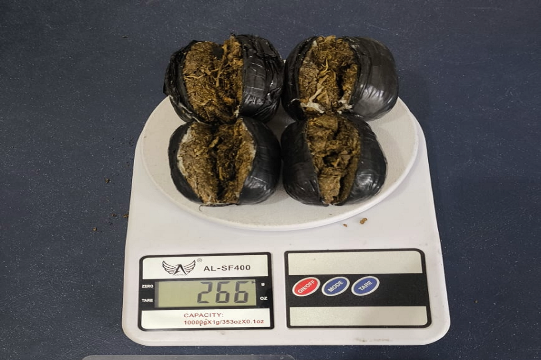 O visitante, ao ser questionado, confessou que portava maconha, que estava colada em seu corpo. Ele entregou os quatro invólucros contendo 266 gramas de maconha, e dois maços de papel de seda, num total de 66 unidades.