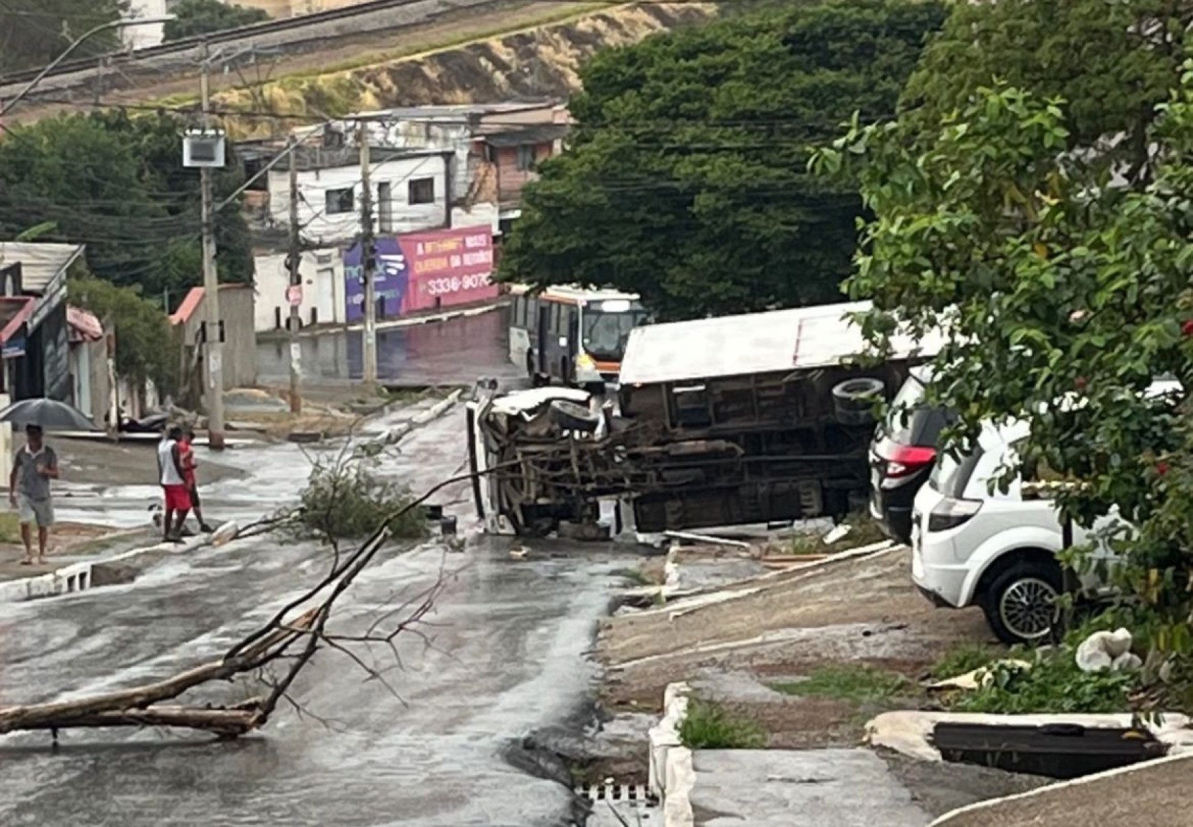 O tombamento de um caminhão deixou duas pessoas feridas e bloqueia a Avenida Minas Gerais, no bairro Morada da Serra, em Ibirité (MG), na Região Metropolitana de Belo Horizonte, na tarde desta quinta-feira (30/10).