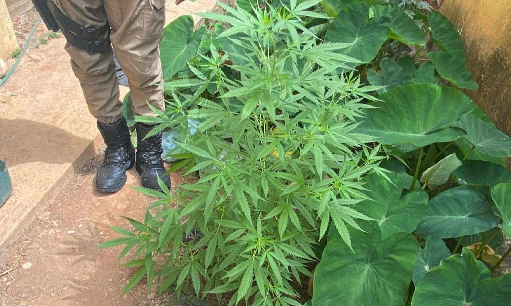 Os militares fizeram uma varredura na casa e encontraram um pé de maconha de porte médio e uma porção da mesma droga.