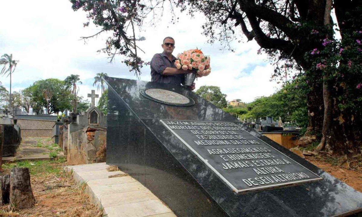 Sobre a lápide de um túmulo bem perto da entrada do Cemitério da Saudade, na Região Leste de Belo Horizonte, não há nome e sobrenome, apenas palavras de profunda gratidão. Na placa de metal em destaque no mármore, está escrito: “Aqui jazem os restos mortais dos doadores de corpos da Faculdade de Medicina da UFMG. Agradecimentos e homenagens jamais estarão à altura do seu altruísmo”. Ao lado, colocando um vaso de rosas no mausoléu, o professor de anatomia humana topográfica da Faculdade de Medicina da Universidade Federal de Minas Gerais, Kennedy Martinez de Oliveira, repete a frase em voz alta com ênfase em altruísmo. “Podemos fazer muito pela vida, mesmo após a morte”, diz o professor, explicando que outros cemitérios de BH também podem receber os corpos de doadores.