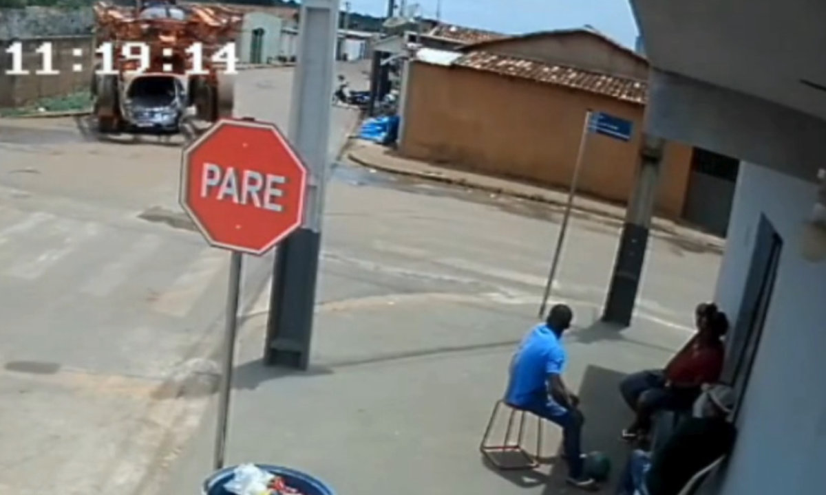 Uma máquina agrícola bateu em um carro de passeio em uma cruzamento da cidade de Iraí de Minas, no fim da manhã dessa segunda-feira (17/11). O caso foi registrado por meio de um câmera de segurança.