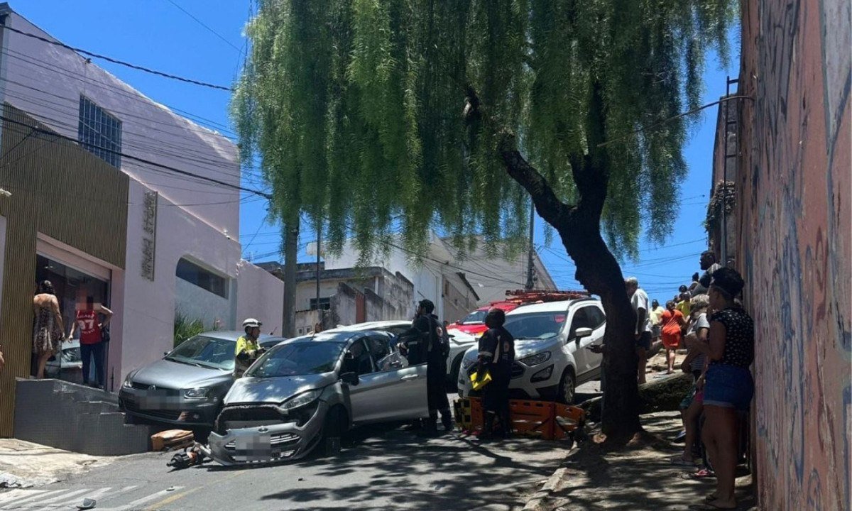 Segundo o Corpo de Bombeiros, depois do impacto entre os carros, um dos veículos atingiu o portão de uma casa, que caiu sobre uma moradora. Bombeiros, Samu e Polícia Militar foram acionados para atender a ocorrência.