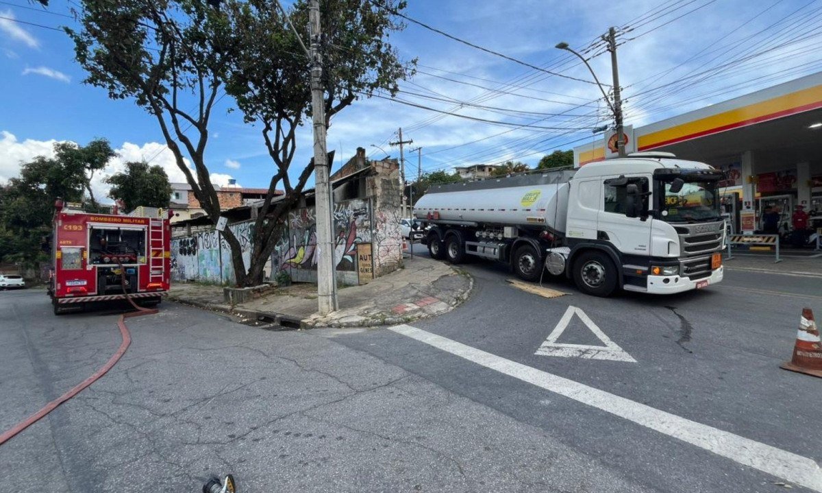 Um caminhão carregado de combustível esbarrou em um poste e derrubou a fiação elétrica da Rua Leopoldo Gomes, no bairro Pompéia, Região Leste de Belo Horizonte, neste sábado (29/11).