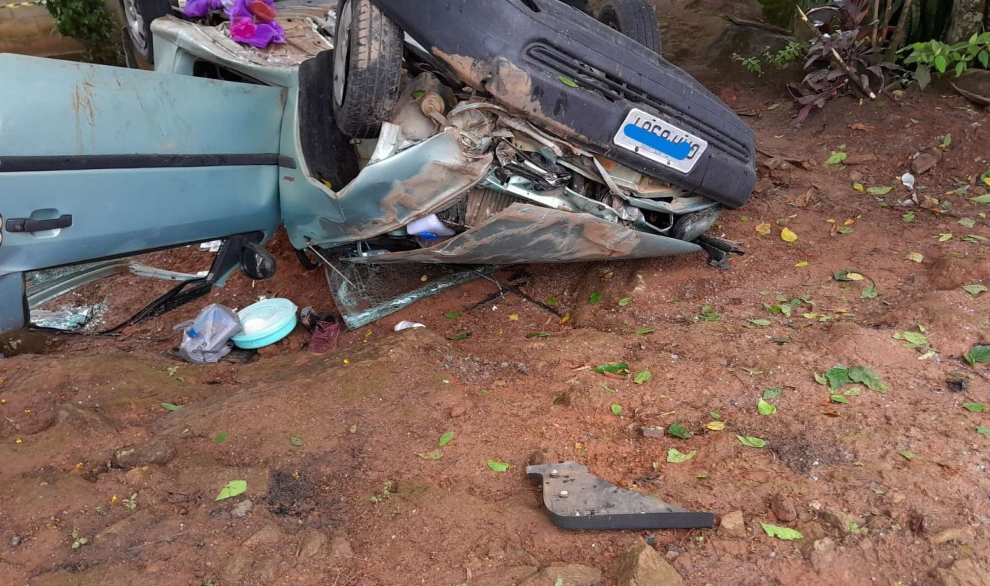 O carro seguia em direção a Sete Lagoas (MG) quando saiu da pista e capotou, parando com as rodas voltadas para cima.