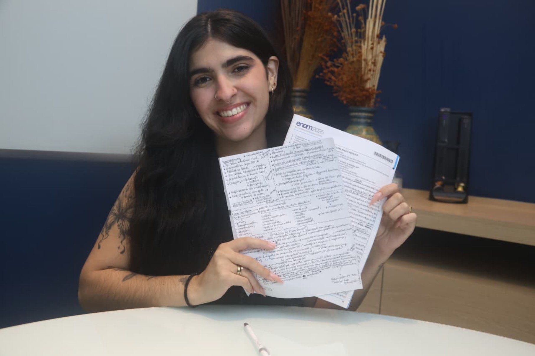 Segundo a educadora, dias antes do simulado houve um “aulão” de revisão onde cinco possíveis tópicos foram explorados, entre eles o envelhecimento populacional, pessoas neurodivergentes, meio ambiente e tecnologia. E o tema do teste, que os alunos só descobriram durante a aplicação, foi exatamente o que viria a ser aplicado no Enem.