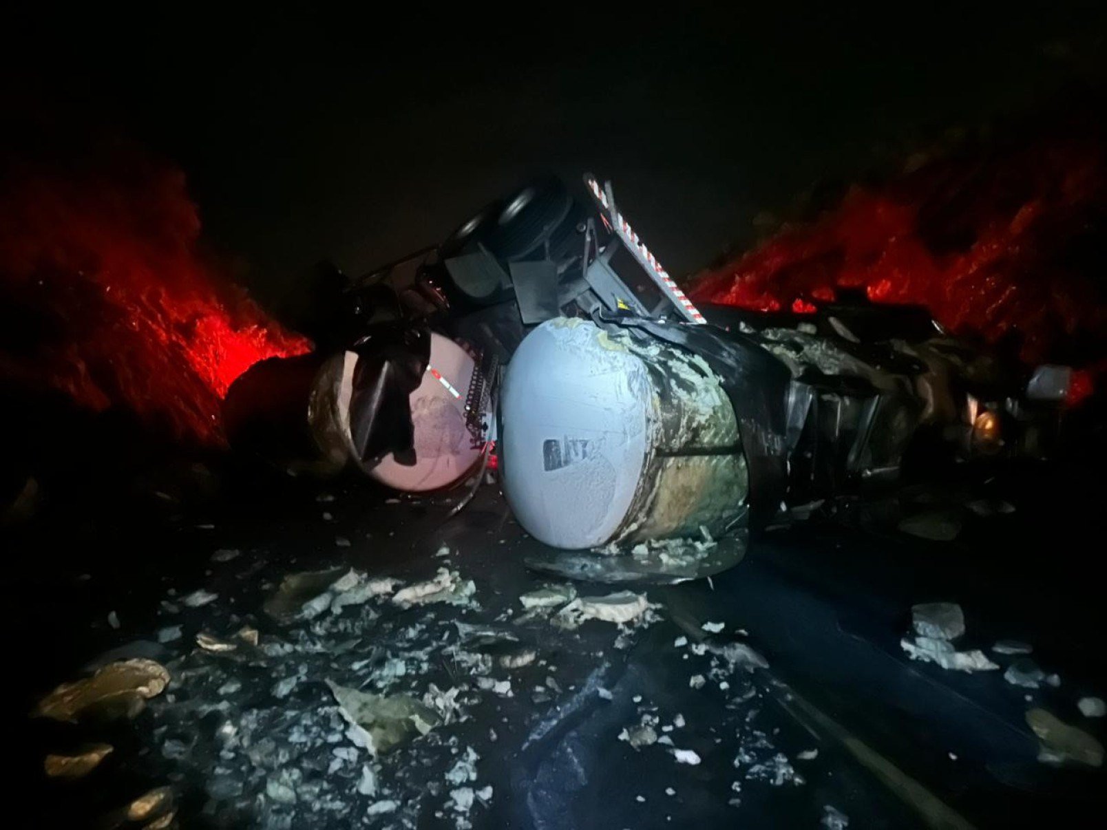 Uma carreta bitrem carregada com leite colidiu lateralmente com um Toyota Corolla na noite dessa sexta-feira (14/11), deixando o caminhoneiro morto na MGC-460, entre Carmo de Minas e Olímpio Noronha, no Sul de Minas.