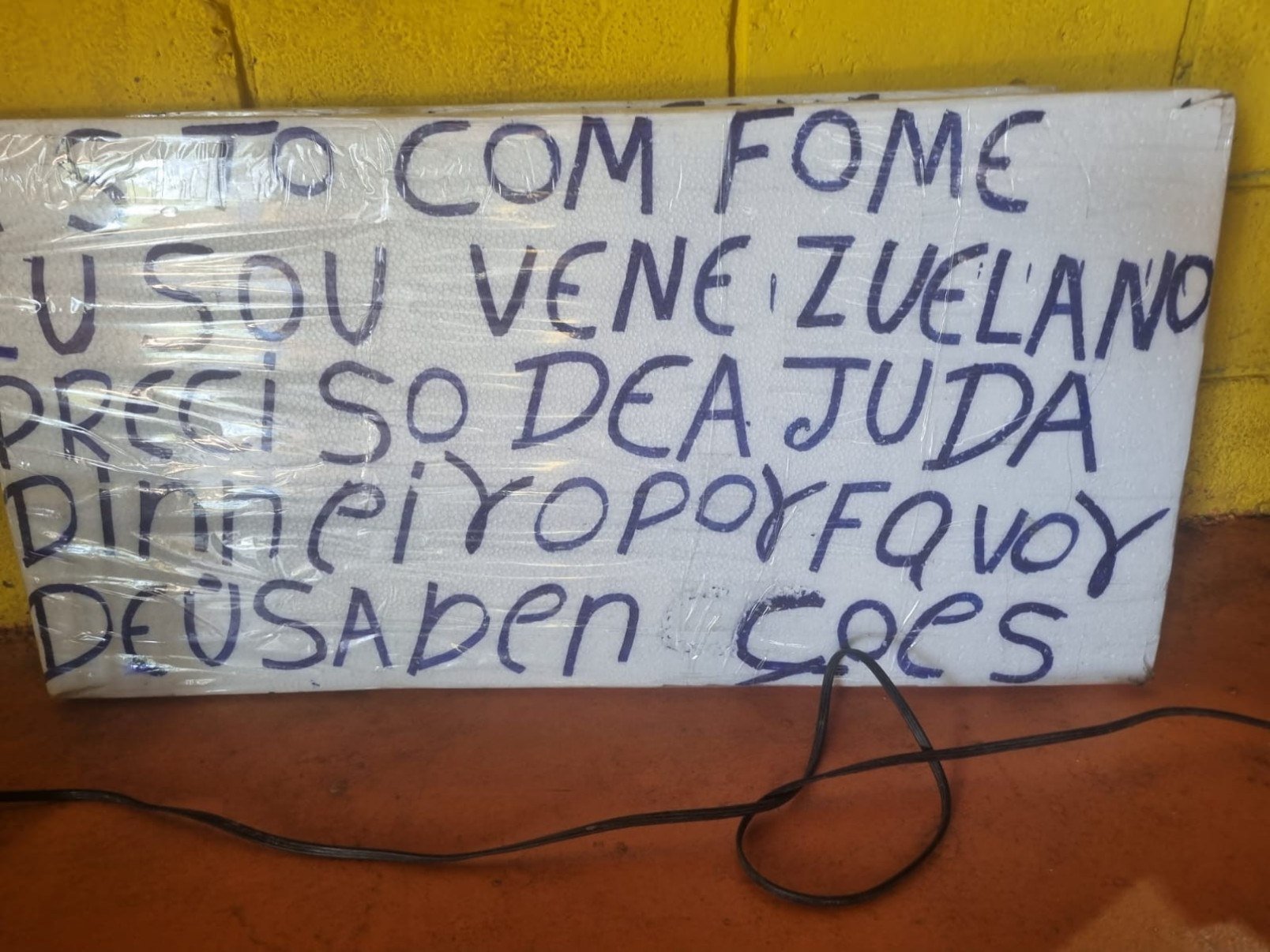 Em uma placa colocada junto ao local onde eles estão, os imigrantes se queixam de fome e pedem por ajuda. A reportagem foi ao ginásio neste domingo (16/11) e notou que foram distribuídos colchonetes, redes e marmitas aos venezuelanos.