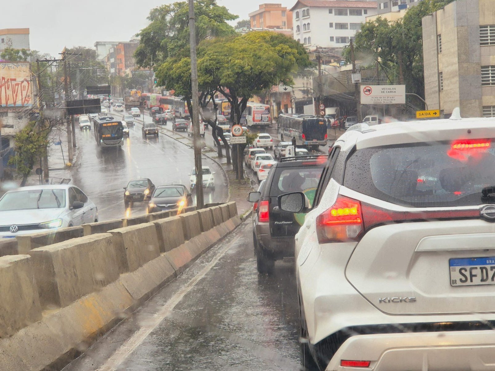 Também há semáforos em modo flash na Avenida Francisco Sales, na Região Hospitalar, o que força motoristas a reduzirem a velocidade, aumentando os pontos de retenção. A combinação de pavimento molhado, horário de pico e semáforos instáveis tem tornado o deslocamento ainda mais difícil.