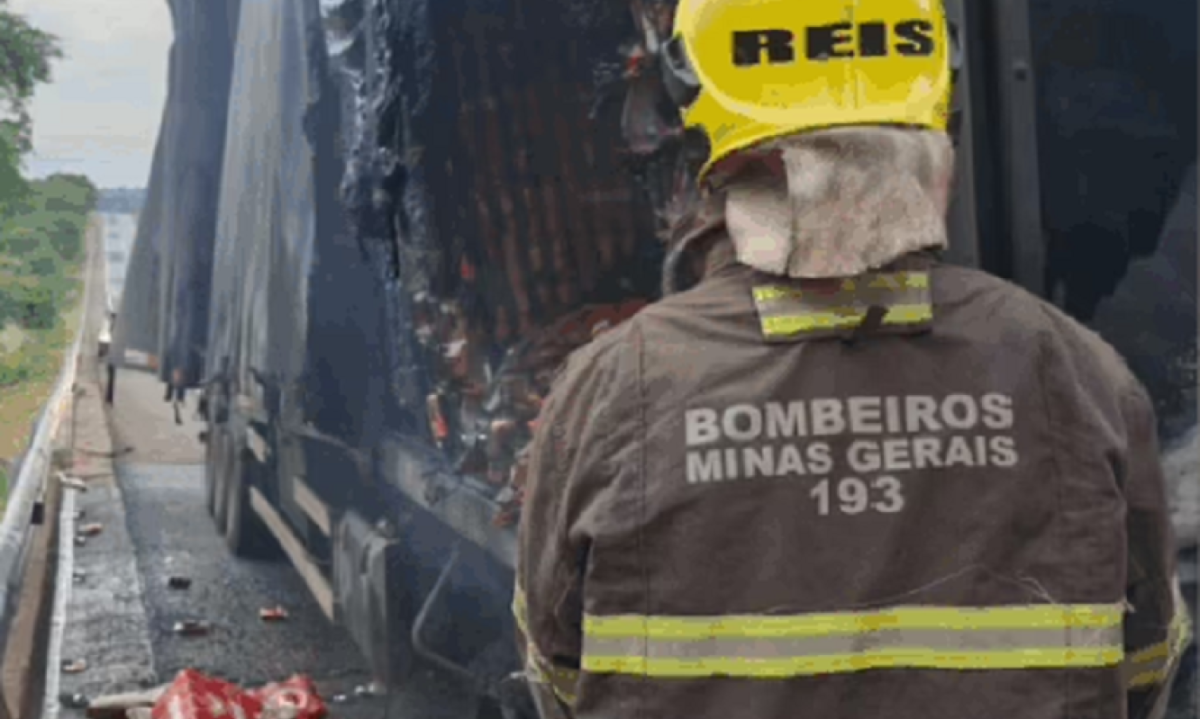 Carreta com cervejas pega fogo e BR-050 é interditada