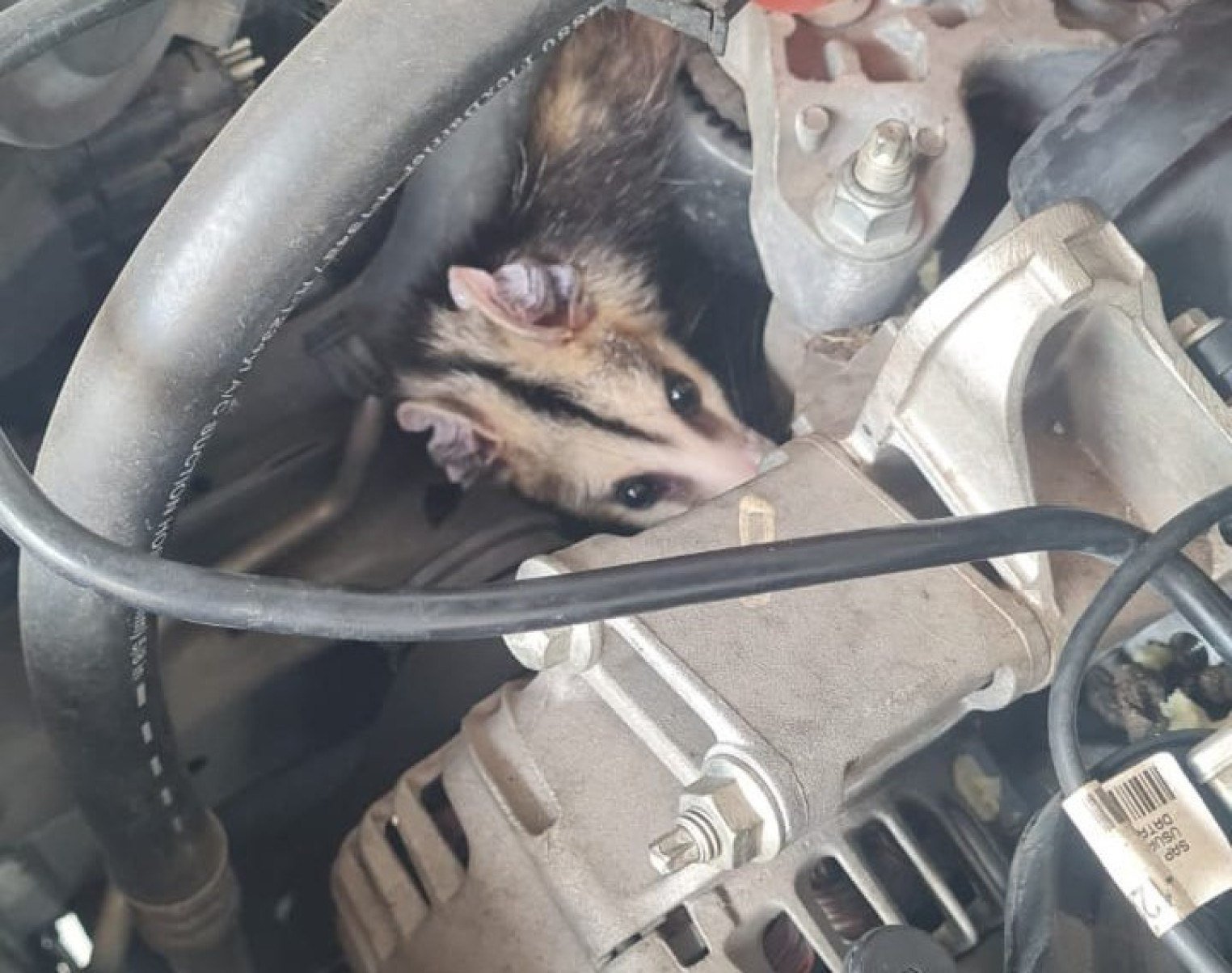 Um gambá encontrado dentro do motor de um carro mobilizou o Corpo de Bombeiros na manhã dessa sexta-feira (5/11), no Centro de Formiga (MG), no Centro-Oeste do estado. A proprietária do veículo acionou a corporação após perceber que o animal estava abrigado na parte interna do motor.