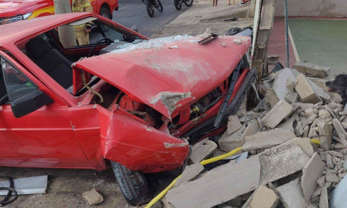 Acidente derrubou muro de imóvel no bairro Industrial, em Contagem, na Região Metropolitana. Vítimas foram socorridas e entregue aos cuidados do Samu