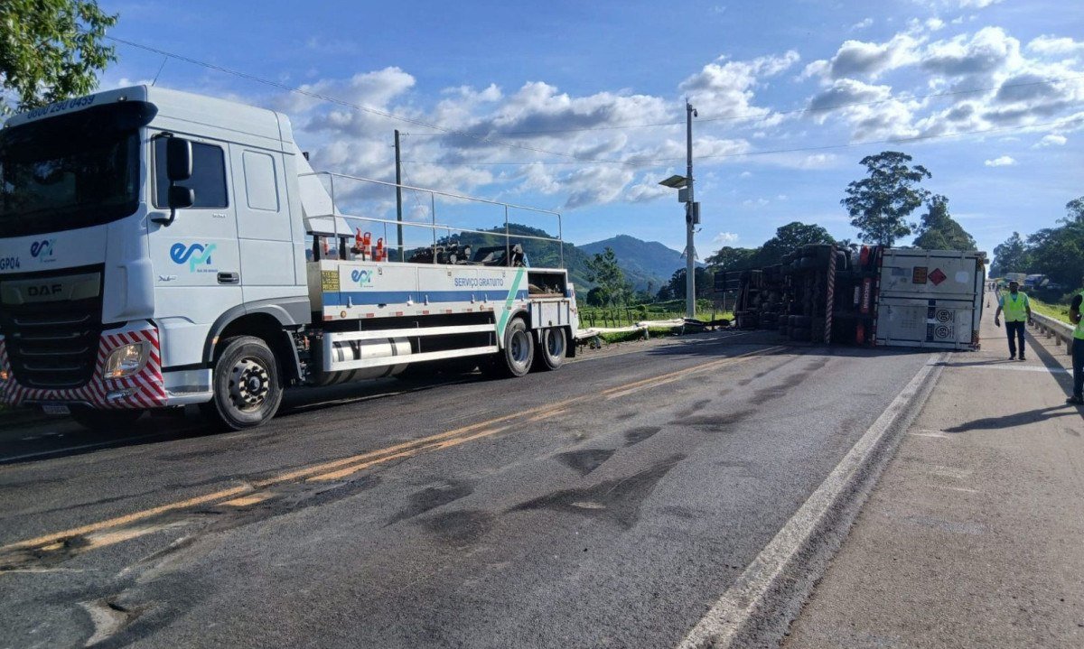 MG: caminhão carregado com 10t de gás natural tomba e interdita BR há horas