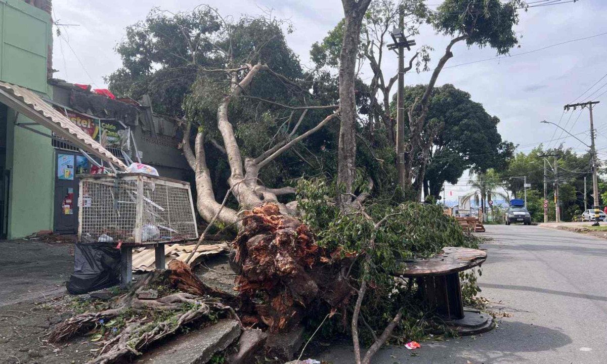 Com a forte chuva da noite desse domingo (14/12), a espécime caiu em cima da casa de Flávia, causando um estrago ainda maior. A reportagem flagrou a árvore caída na rua. Nas imagens, é possível observar a raiz exposta e o tamanho da árvore.