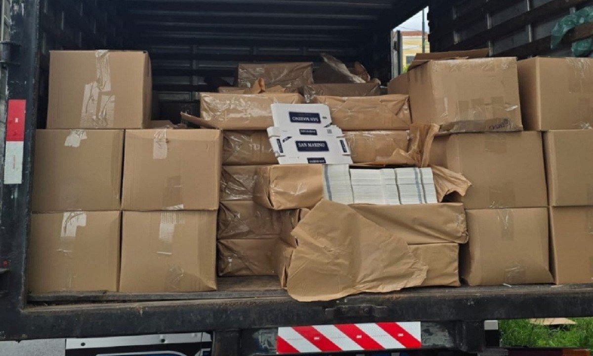 Foram apreendidas milhares de embalagens de maços falsificados. Duas pessoas foram presas