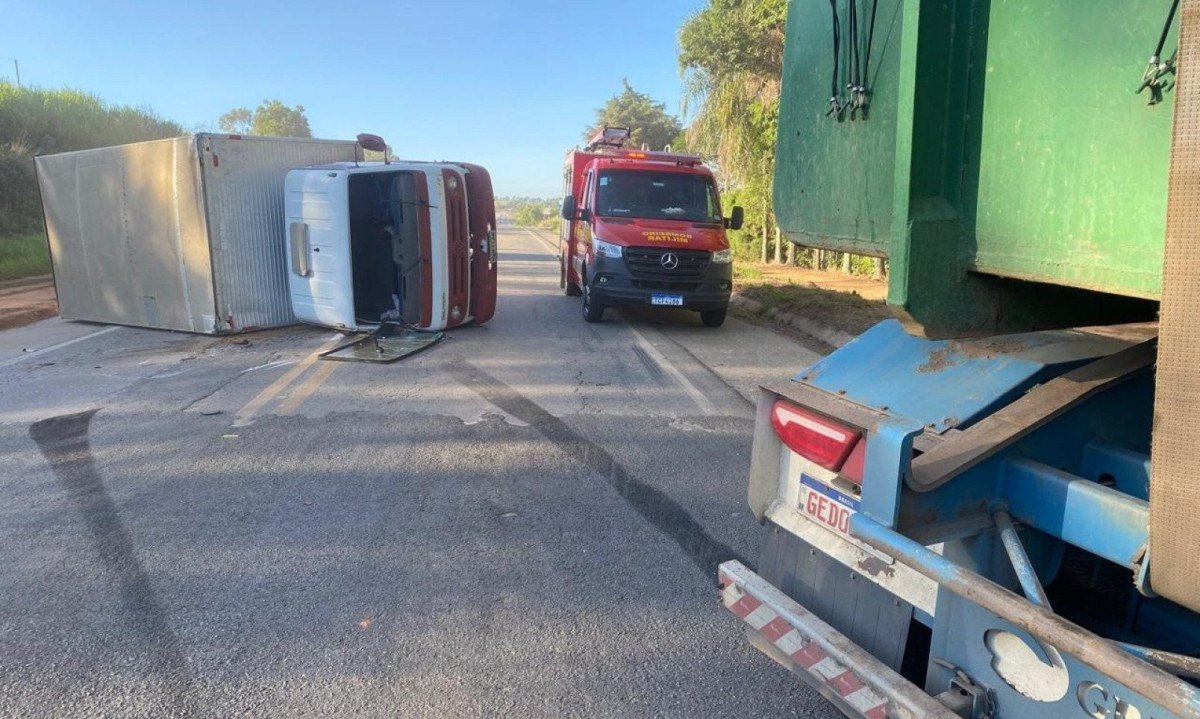 Um acidente envolvendo um caminhão-baú e uma carreta mobilizou o Corpo de Bombeiros Militar de Minas Gerais (CBMMG) em Pouso Alegre, na Região Sul de Minas Gerais, nesta terça-feira (23/12). Com o impacto, que ocorreu na altura do Km 99 da MG-179, um dos veículos tombou e bloqueou a rodovia.