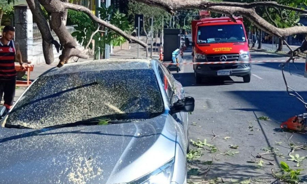 Segundo o Corpo de Bombeiros (CBMMG), o galho ficou preso sobre o veículo e impediu que o motorista saísse imediatamente do carro. Com a ajuda de pessoas que passavam pela via, o homem conseguiu sair. Apesar do susto, ninguém ficou ferido.