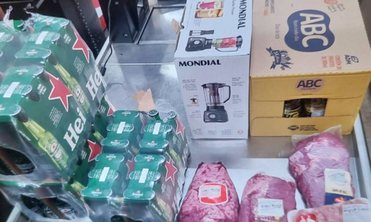 Ele havia enchido o carrinho com 48 garrafas de cerveja de 330ml e outras 24 unidades de 250ml. O homem ainda levava três peças de carne — fraldinha, picanha e cupim —, além de duas bandejas de linguiça. Com ele também estavam 20 litros de óleo de soja e um liquidificador.