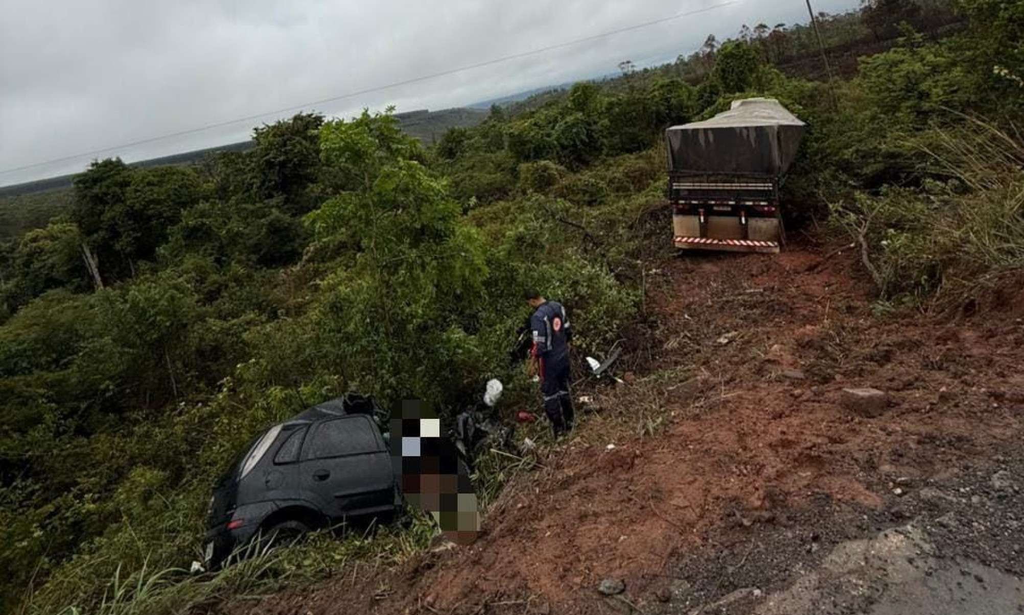 Com o choque, os dois veículos foram arremessados em uma ribanceira. Chovia no momento do acidente e havia muita neblina.