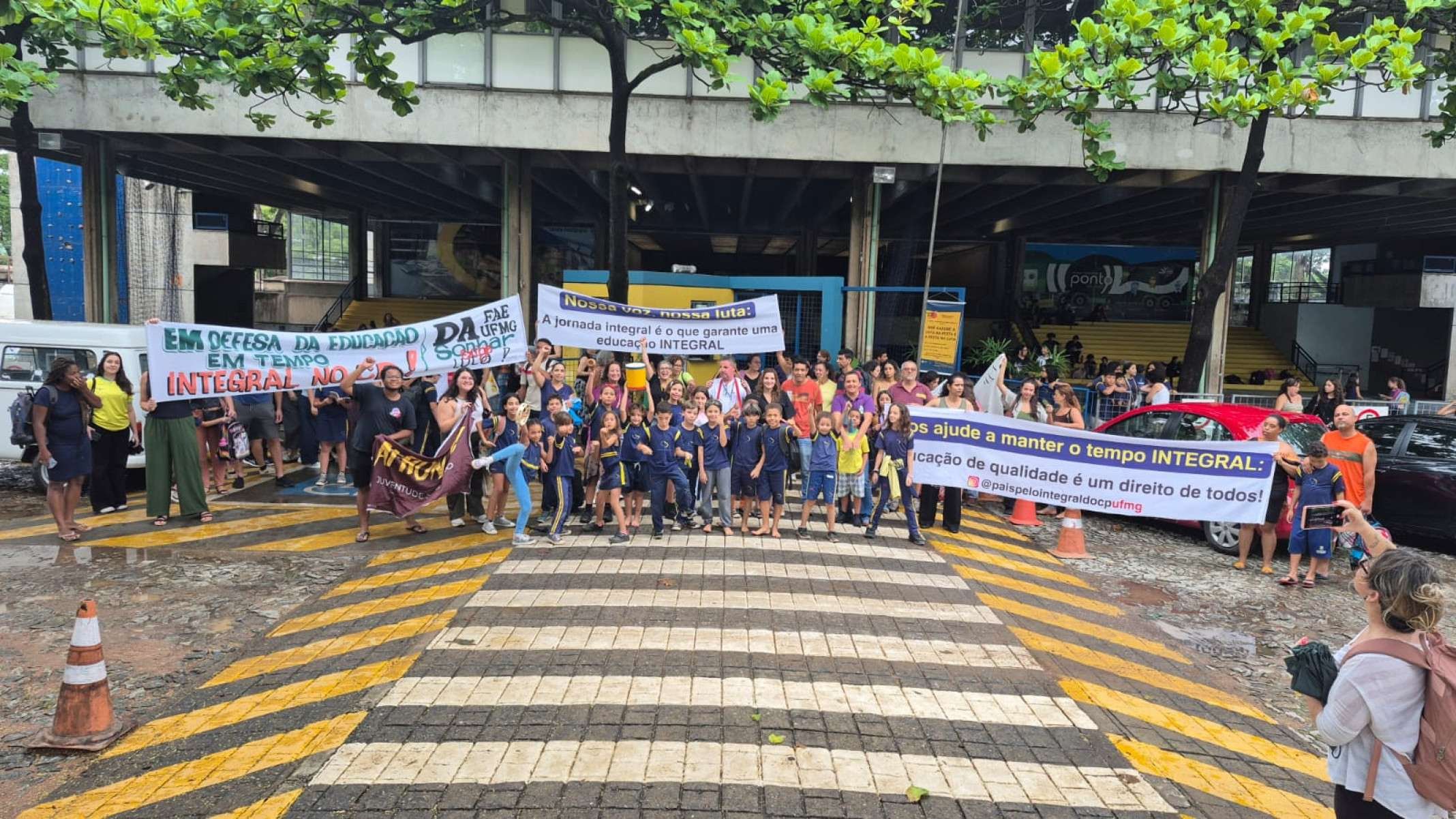 Nesta quinta-feira (4/12), pais, alunos, professores e licenciandos realizaram um ato simbólico em frente ao CP no campus Pampulha para pedir que o regime integral seja preservado. O protesto reuniu famílias de todas as séries, incluindo responsáveis por cerca de 50 crianças com deficiência, das quais 20 possuem Transtorno do Espectro Autista (TEA). Para elas, o tempo estendido é visto como indispensável.