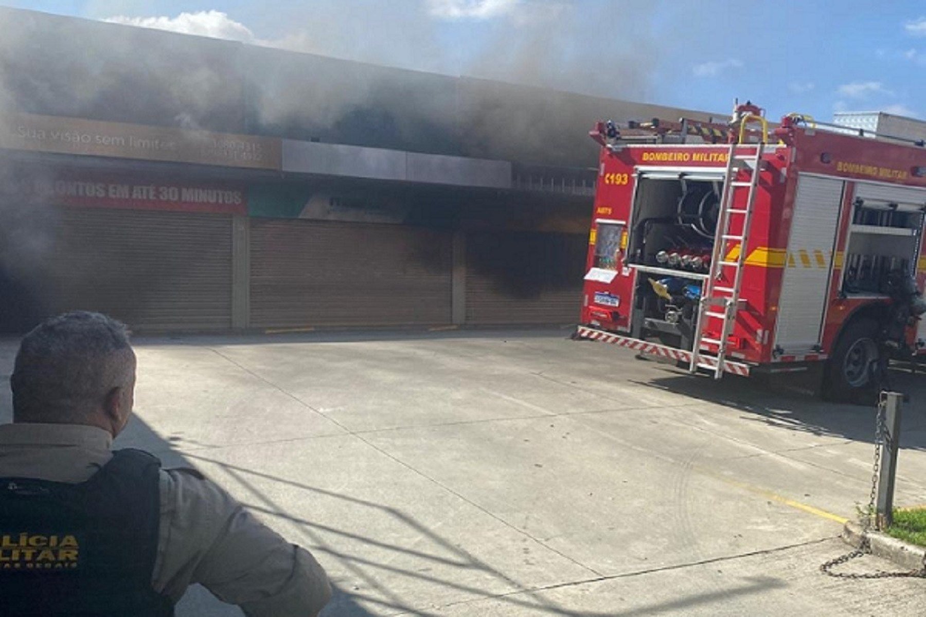 O fogo começou em uma clínica de estética e atingiu duas lojas vizinhas: uma de roupas e uma ótica.