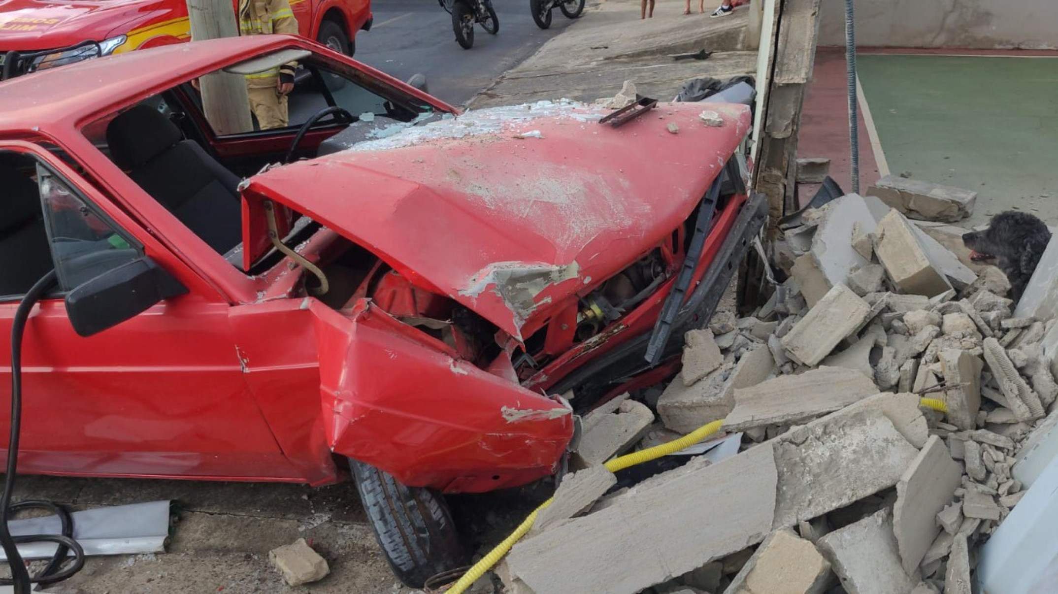Um casal ficou ferido depois que o homem perdeu o controle do carro que dirigia e bateu contra um muro na Rua Elias Perpétuo Oliveira, Bairro Industrial, em Contagem (MG), na Região Metropolitana de Belo Horizonte, na tarde deste domingo (7/12).