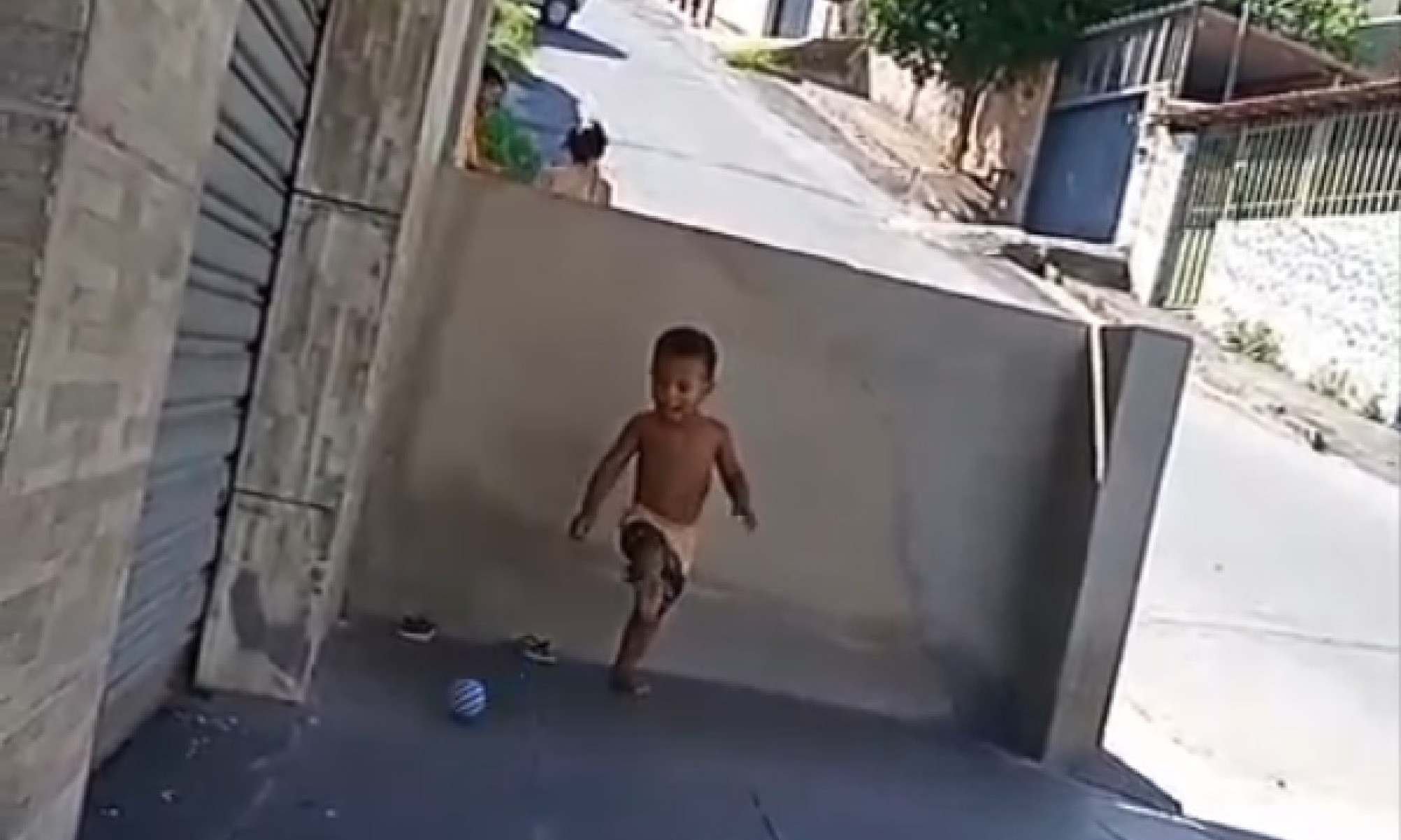 Um registro de Raiel, o menino de 2 anos que morreu atropelado por uma adolescente de 15 anos nesse domingo (7/12) em Santa Luzia, Região Metropolitana de Belo Horizonte, mostra a criança brincando no local do acidente.