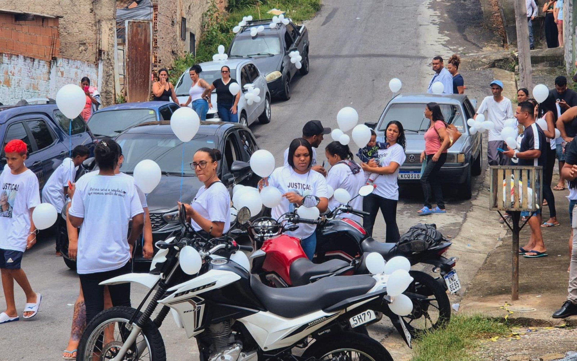 O cortejo saiu da frente da casa de Hariel, onde ocorreu o acidente, às 10h30. Eram carros, motocicletas, além de uma van e um ônibus, que levaram amigos da família até o velório.