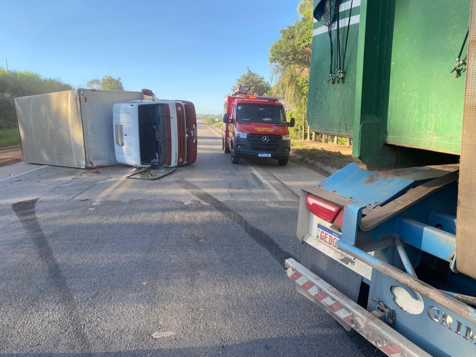 Um acidente envolvendo um caminhão-baú e uma carreta mobilizou o Corpo de Bombeiros Militar de Minas Gerais (CBMMG) em Pouso Alegre, na Região Sul de Minas Gerais, nesta terça-feira (23/12). Com o impacto, que ocorreu na altura do Km 99 da MG-179, um dos veículos tombou e bloqueou a rodovia.