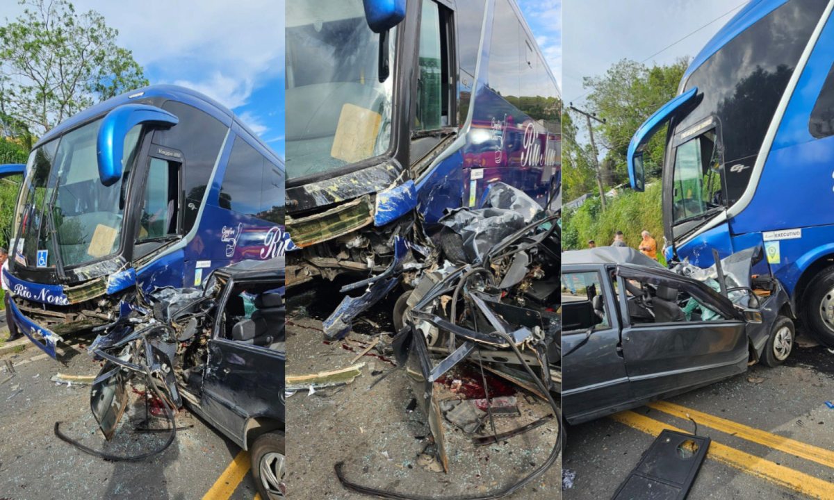 Um motorista morreu ao bater o carro de frente com um ônibus na manhã desta sexta-feira, por volta das 7h30, em Juiz de Fora (MG), na Zona da Mata.