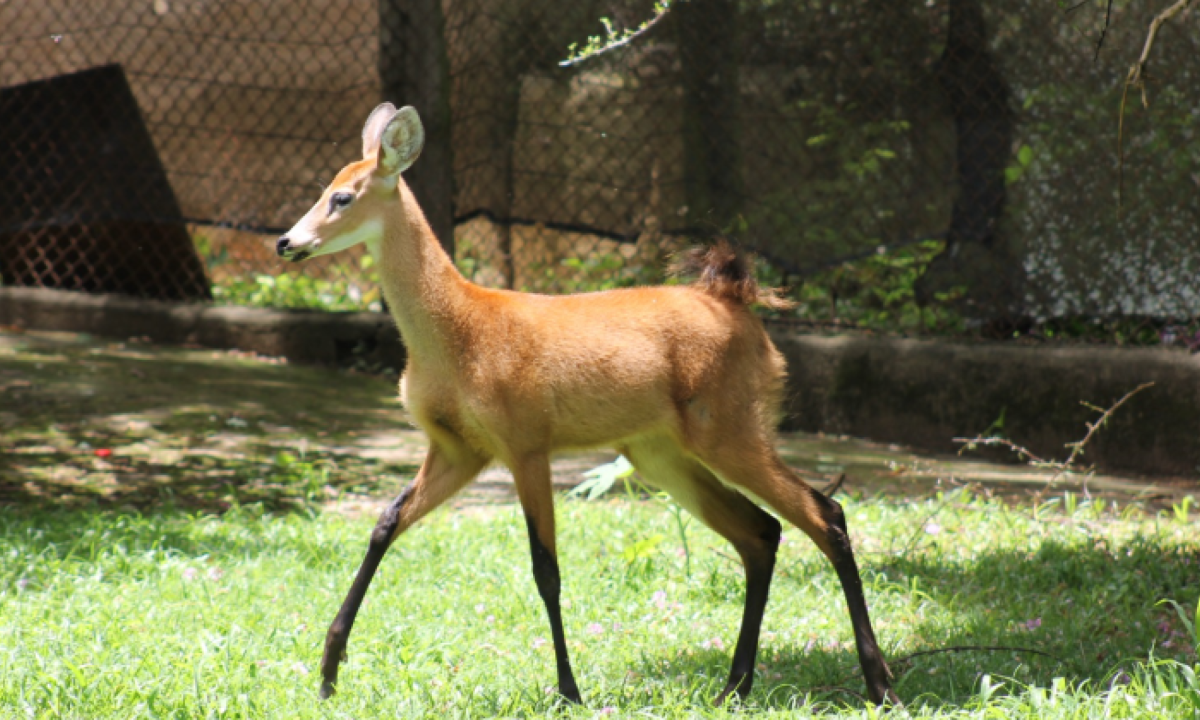 O veado-catingueiro não está na lista de ameaçados de extinção, só que é mais um que tem sido vítima da perda de habitat. No Zoo de BH, existem sete indivíduos, em que quatro são adultos (três fêmeas e um macho) e três filhotes. Dois animais nasceram em 2024 e um em fevereiro de 2025.