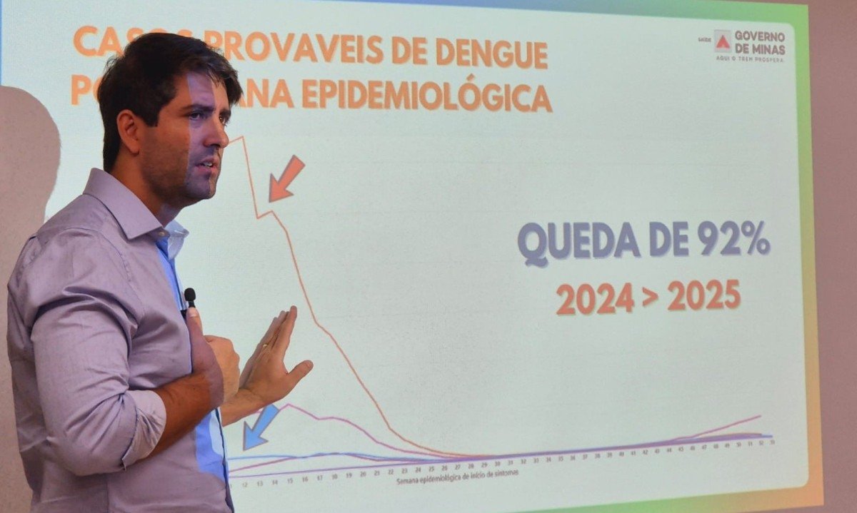 Baccheretti também detalhou as ações de prevenção, enfrentamento e controle da dengue e das outras arboviroses no estado. O secretário ressaltou a queda expressiva nos casos em 2025. Em Minas, foram registrados 118.858 casos prováveis para a doença, uma redução de 92% em relação a 2024. No mesmo período, foram contabilizados 17.803 casos confirmados de chikungunya e 26 de zika.
