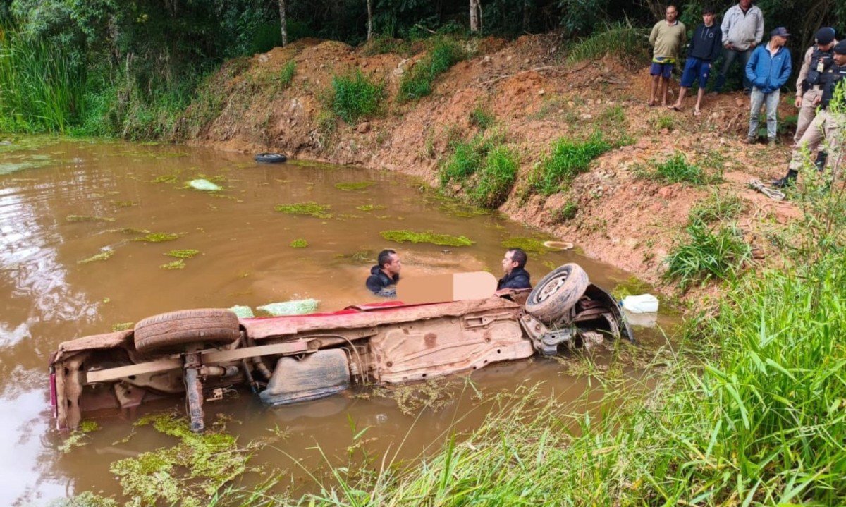 Veículo perdeu o controle e ficou submerso na zona rural de Bueno Brandão (MG)