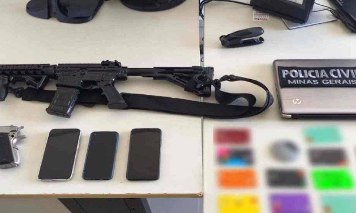 Na operação, foram apreendidos computadores, celulares, cartões de crédito e armas do tipo airsoft, que foram encaminhados para exame pericial.