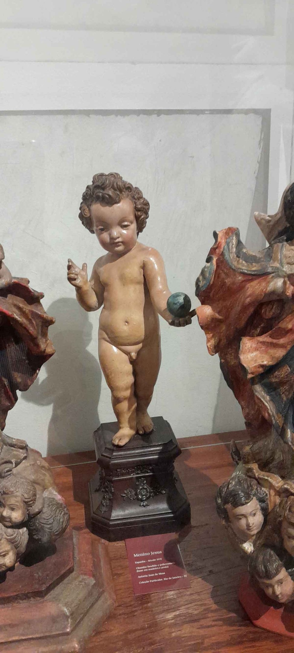 Menino Jesus, da Espanha, do século 17. De autoria de Juan de Mesa, a peça é chumbo fundido e policromado, com base em madeira e prata