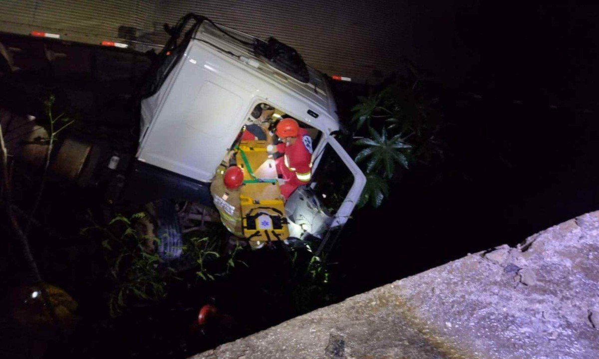 Segundo o Corpo de Bombeiros, a força da batida jogou um dos veículos para fora da pista em um terreno inclinado. Dentro, uma das vítimas se encontrava presa às ferragens. Foi necessário estabilizar a carreta para desencarcerar a vítima, que ficou aos cuidados da equipe da unidade de suporte avançado.