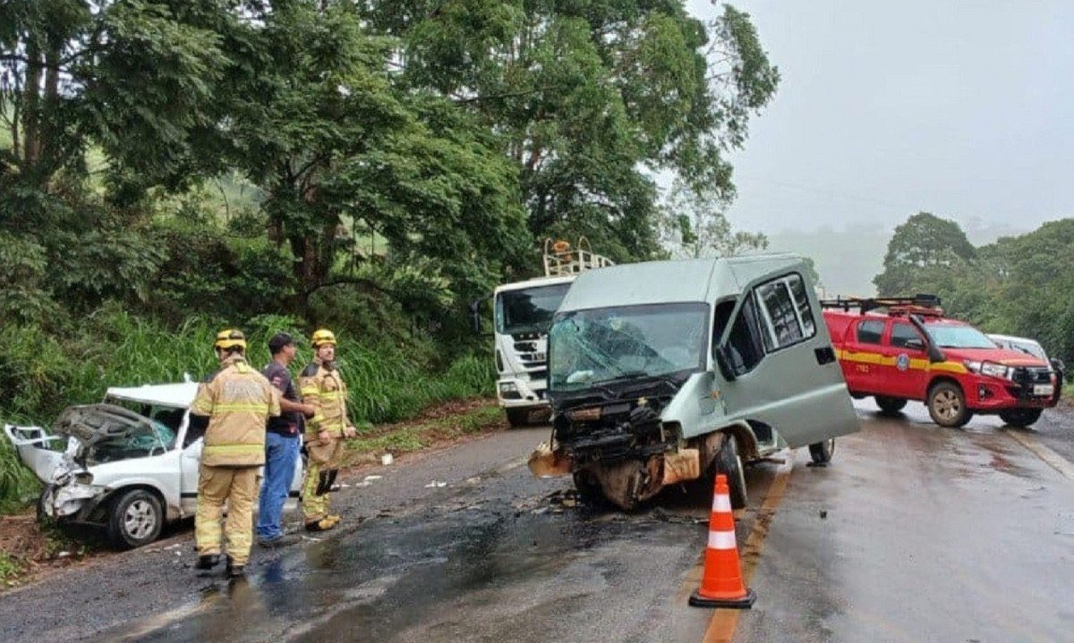 Colisão frontal entre uma Fiat Ducato e um Chevrolet Celta ocorreu na rodovia MG-179, em São João da Mata, no Sul de Minas